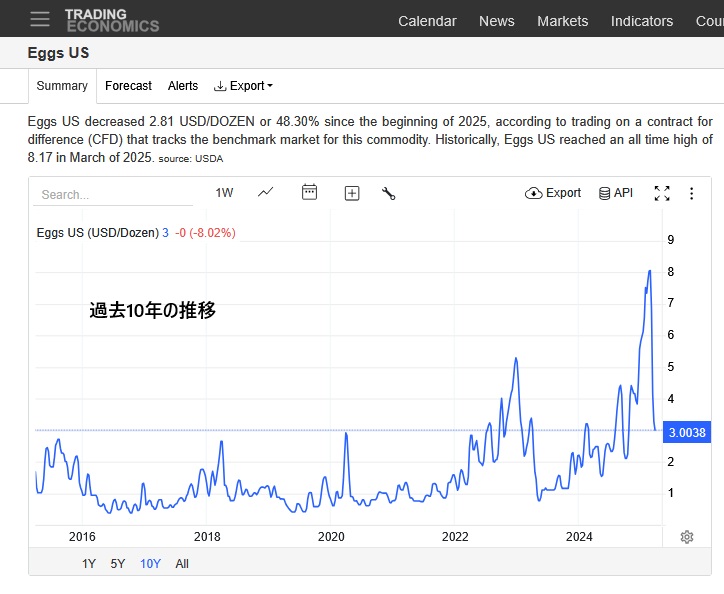 But on the 9th of this month, the Justice Department announced that it is investigating the egg price hikes. A few days later, egg prices dropped dramatically, with wholesale prices reportedly falling 54% over the past month. The decline is attributed to the absence of an avian flu outbreak and farmers rebuilding their flocks, while claims of price gouging by egg producers are said to have accelerated the decline. Small farmers and consumer advocates accuse the big egg producers of keeping prices high.